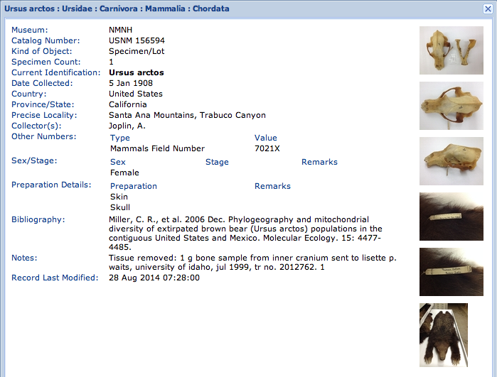 Click below to "Search the Division of Mammals Collection" of the Smithsonian Museum.